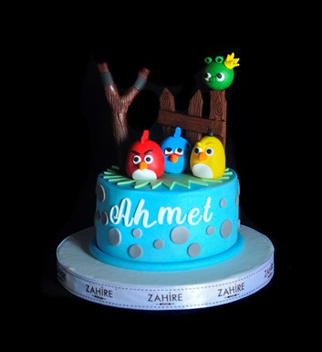 Angry Birds temalı şeker hamurlu tasarım.butik doğum günü pastası