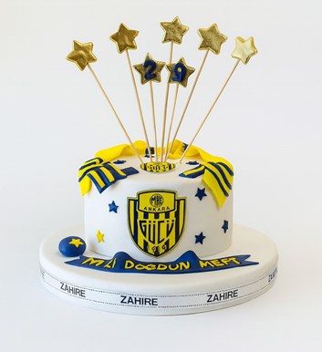 Ankaragücü temalı şeker hamurlu tasarım butik doğum günü pastası