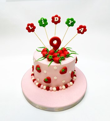 Çilek temalı şeker hamurlu butik doğum günü pastası