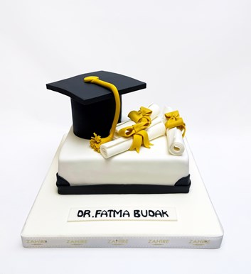 Şeker hamurlu tasarım butik mezuniyet pastası