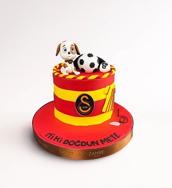 Galatasaray temalı şeker hamurlu tasarım butik doğum günü pastası