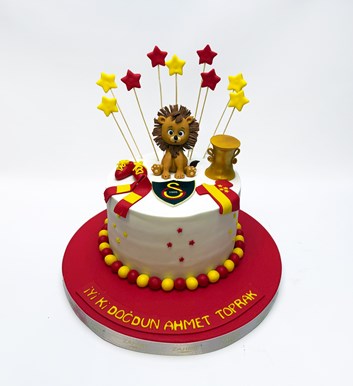 Galatasaray temalı şeker hamurlu tasarım butik doğum günü pastası