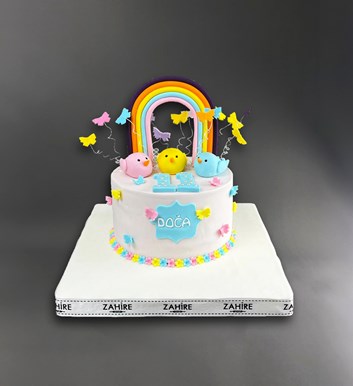 Gökkuşağı ve Kuşlar Pembe Pasta | Zahire Pastanesi