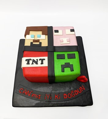 Mine Craft temalı şeker hamurlu tasarım butik doğum günü pastası