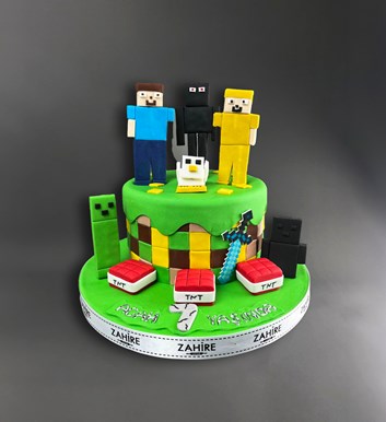 Mİne Craft temalı şeker hamurlu tasarım butik doğum günü pastası