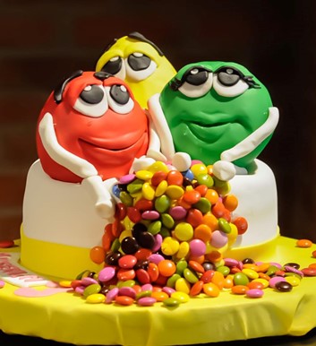 M&M temalı şeker hamurlu tasarım butik doğum günü pastası