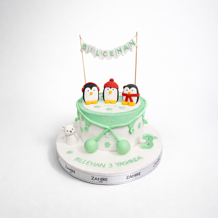 Penguen temalı özel tasarım pasta.
