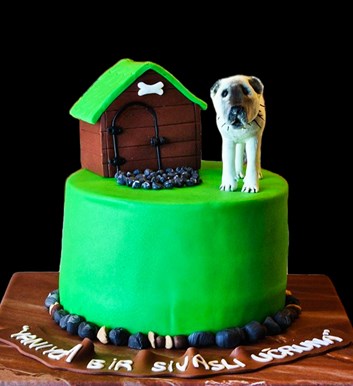 Kangal temalı şeker hamurlu tasarım butik doğum günü pastası