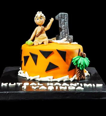 Taş Devri temalı şeker hamurlu tasarım butik doğum günü pastası