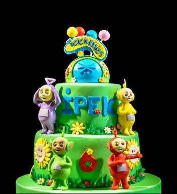 Teletabiler temalı şeker hamurlu tasarım butik doğum günü pastası