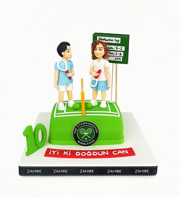 Tenis temalı şeker hamurlu tasarım butik doğum günü pastası