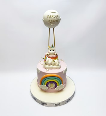 Unicorn temalı şeker hamurlu tasarım butik doğum günü pastası