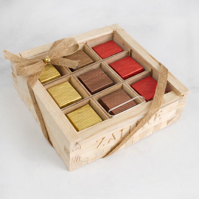 Yaldızlı Çikolata Ahşap Çam Kutu Set Menü | Zahire Pastanesi