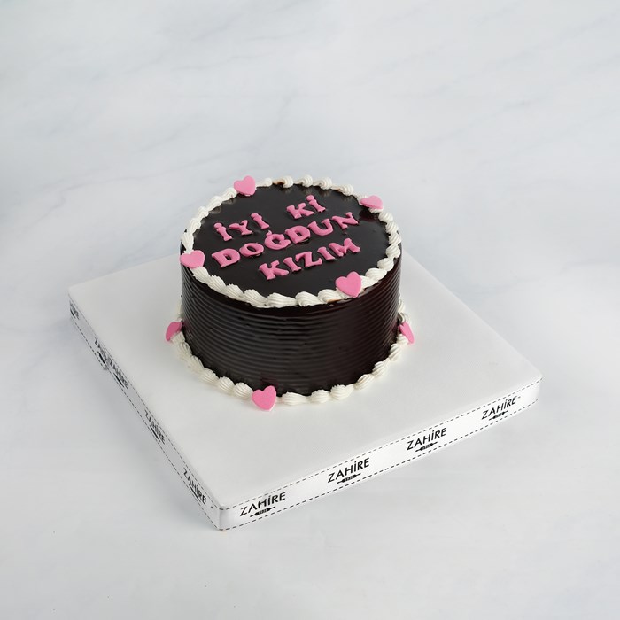 Yuvarlak Çikolata Soslu Yazılı Pasta | Zahire Pastanesi