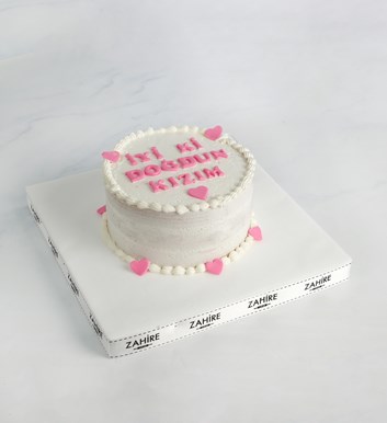 Yuvarlak Beyaz Soslu Yazılı Pasta