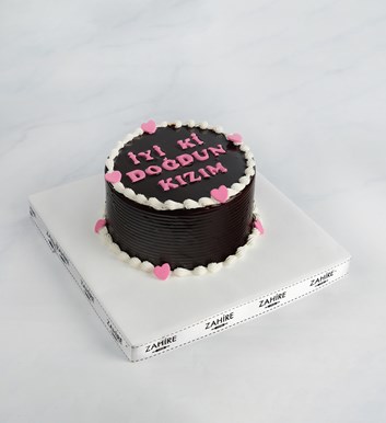 Yuvarlak Çikolata Soslu Yazılı Pasta