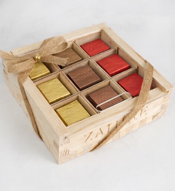 Yaldızlı Çikolata Ahşap Çam Kutu Set Menü